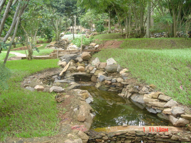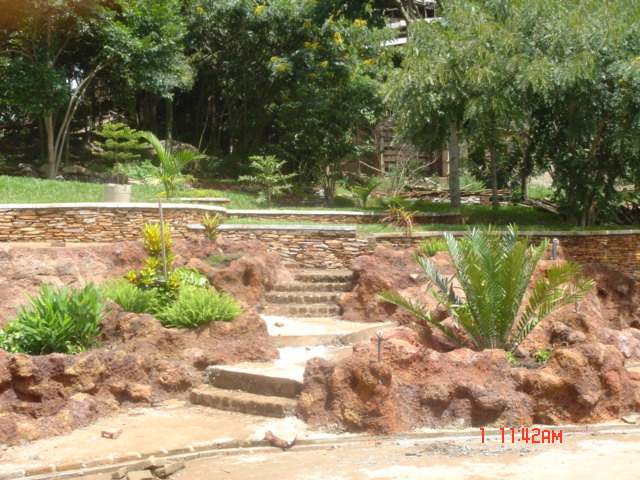 Rockery pool garden with waterfalls